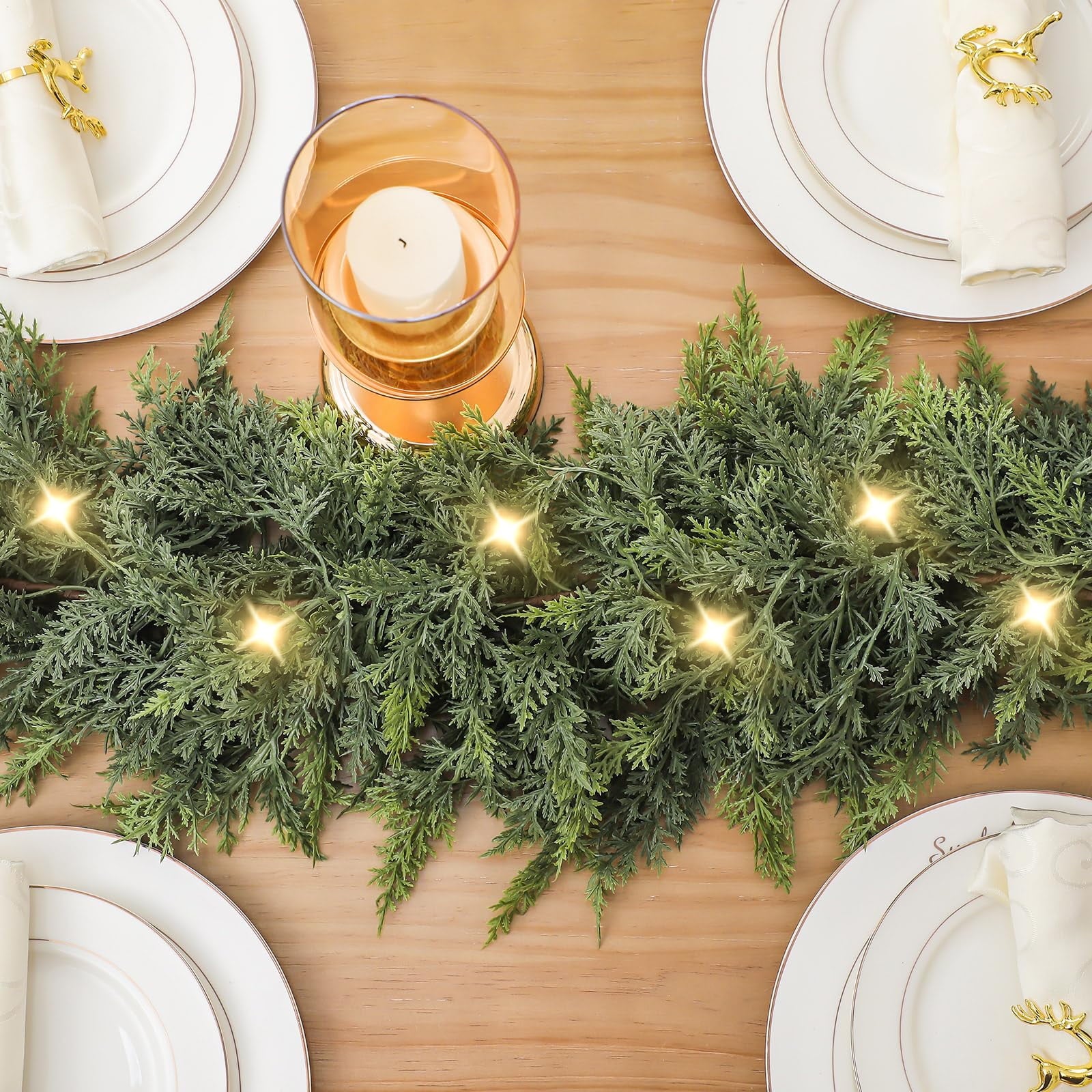 TETOU Christmas Cedar Garland with Lights,Artificial Realistic Cedar Pine Needles Greenery Garland for Christmas Holiday Winter Wall Mantle Fireplace Table Indoor Decor