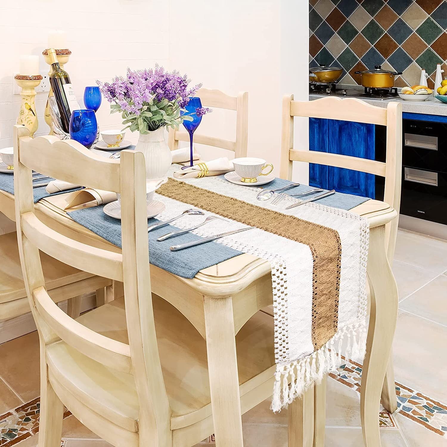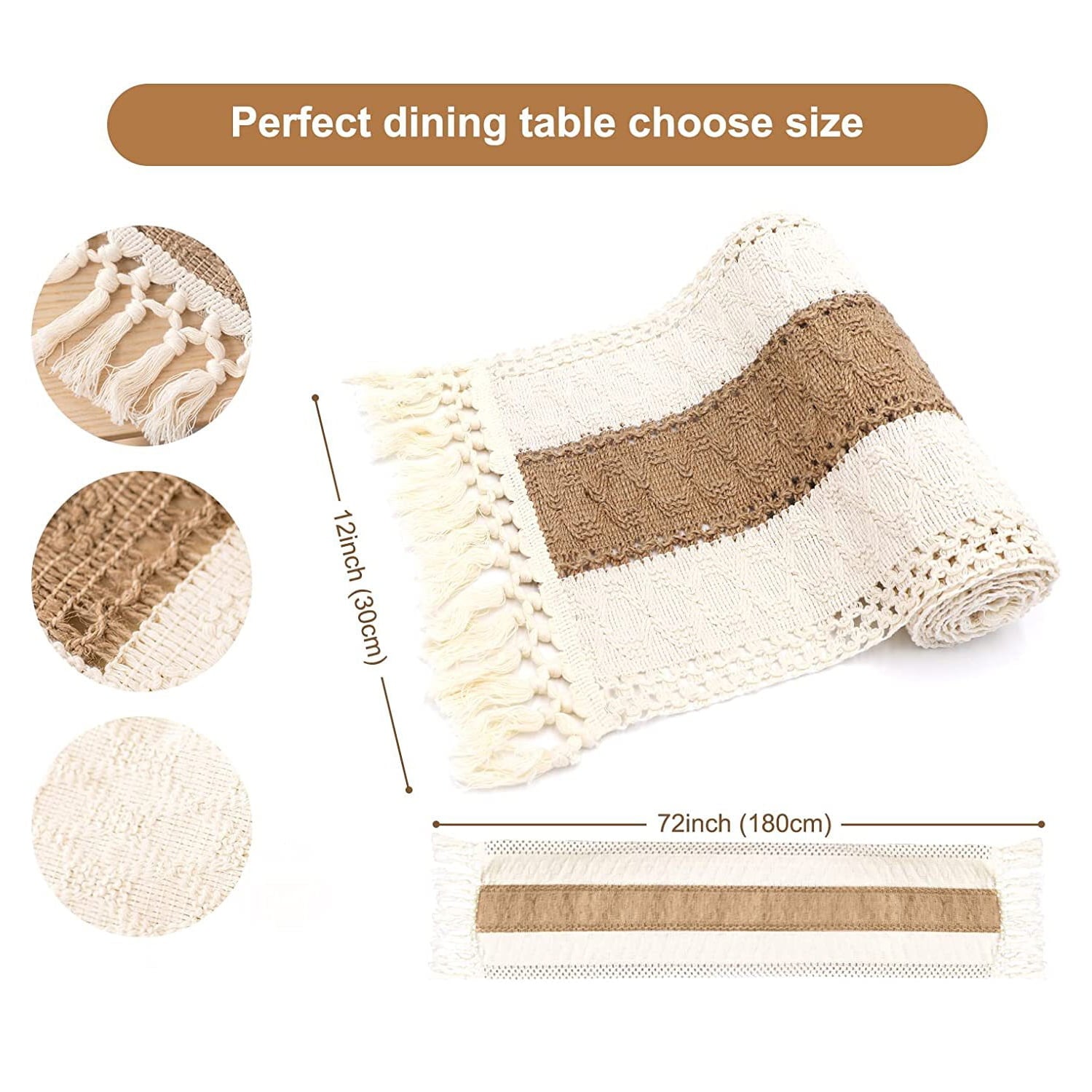 - Perfect 72 Inches Long: TETOU macrame table runner with tassels measures 12 x 72inch, fits a dining table that seats 4-8 people.(Because it is folded in the bag, when you take it out, the table runner will have creases, which will affect your measurement. So, please make sure the table runner is placed neatly and flat before measuring)